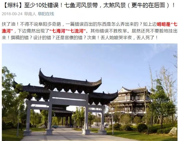 阜阳七渔河风景带标牌出现多处错误,官方回应来了!-阜阳旅游