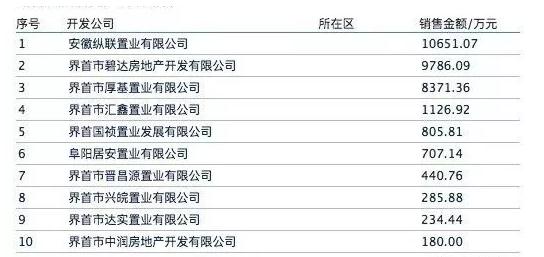 各房产公司销售金额排行