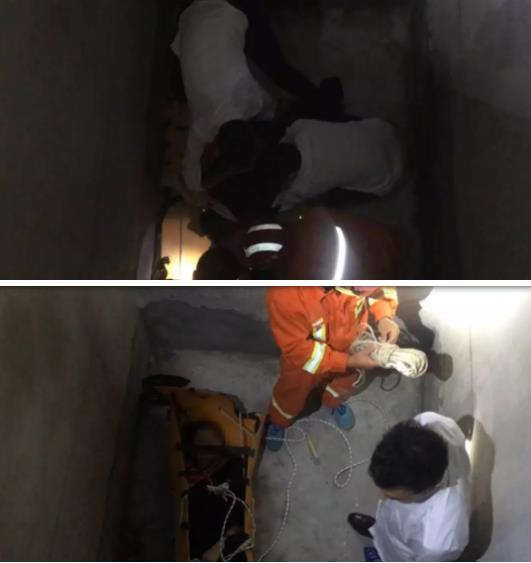 消防员立刻采取措施,将梯子放安全后,让120救护人员先下去查看下女子的身体状况。