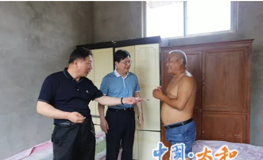 5月29日,安徽省个体民营协会副会长、太和县工商联副主席、太和县金鹰经贸有限公司总经理王平义在太和县委办公室主任潘如年的陪同下,对大新镇张楼村贫困户洪福义进行了走访慰问。