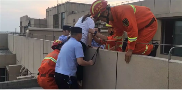 经过与女子沟通并且与美容院协调,最后美容院答应去上海帮该女士重新进行整容,这时该女子同意下来,在现场民警和消防员的努力下将该女子带到安全区。