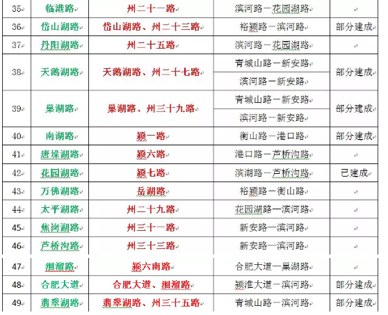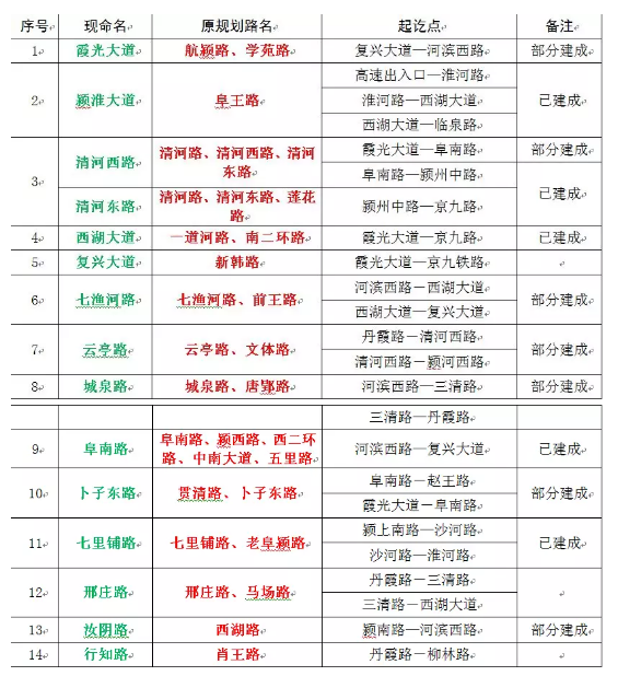 颍南片区共命名道路67条,其中,对49个原规划路名进行调整。