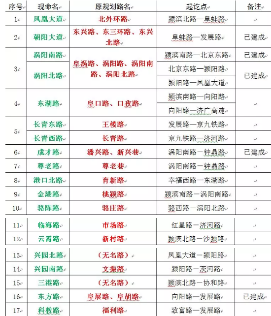 为切实规范阜城道路名称,根据《安徽省地名管理办法》和《阜阳市城市总体规划(2012-2030)》,市政府在广泛征求意见和听证、公示的基础上,对阜城规划区内部分道路名称进行了调整,并经2018年6月29日市政府第29次常务会议研究通过,现予以公布。