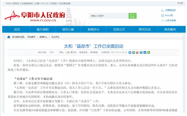 当然,小编“坐不住”了,咱阜阳的太和县何时也能“撤县设市”?因为,先前不少媒体,已经报道了我市太和县“撤县设市”的相关情况。